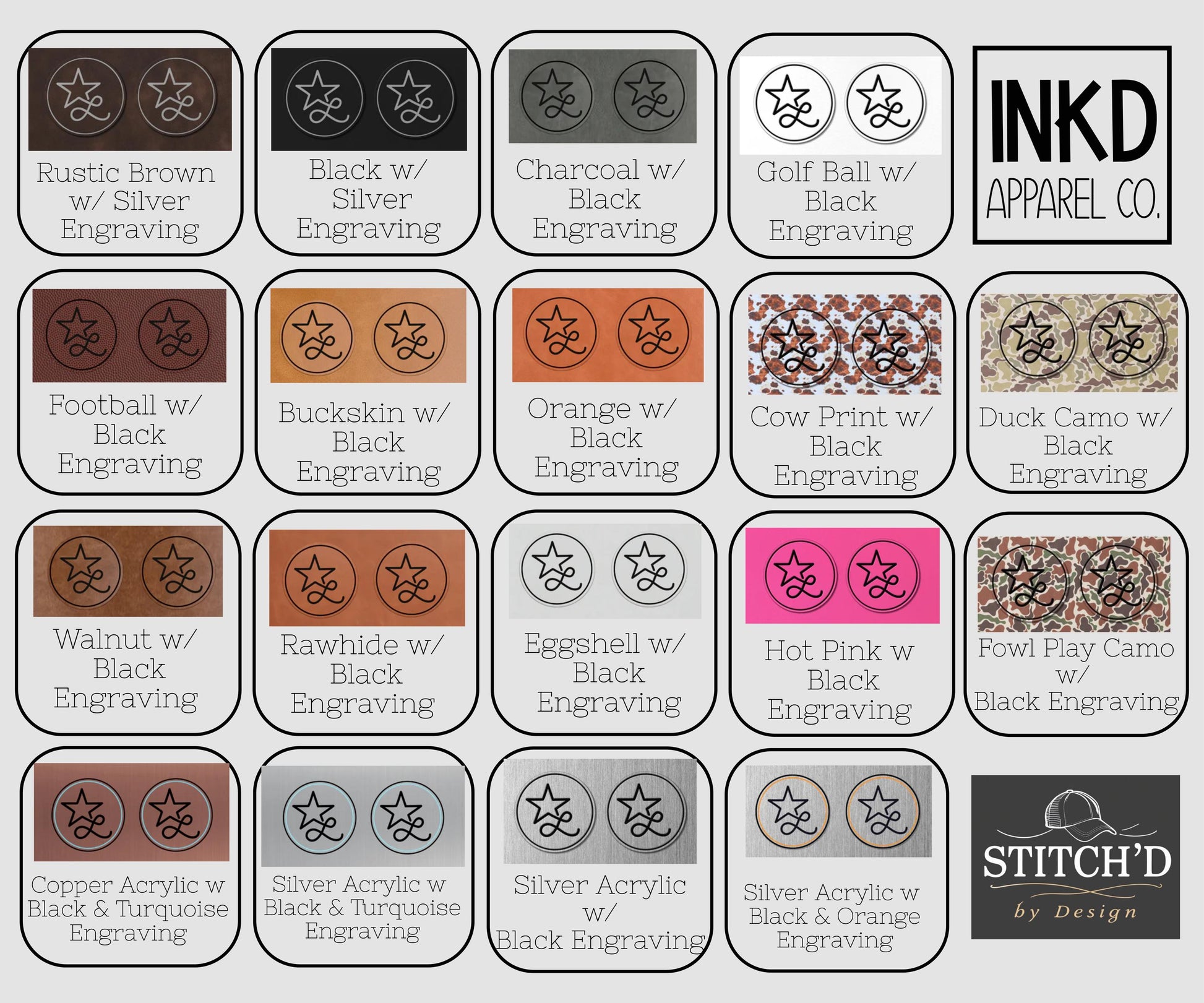 Hat comes with a Leatherette Patch with your custom Design Engraved. Several Hat colors to choose from. Need a different color hat? Send us a message and we will see if that color is available.